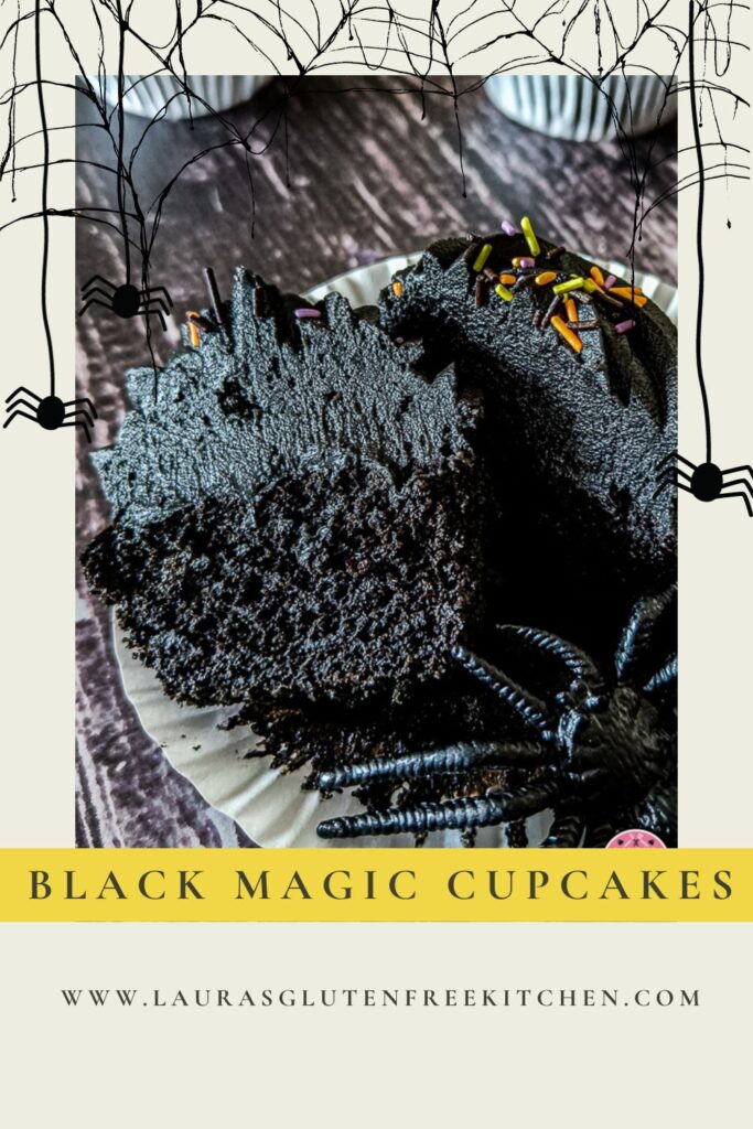 These gluten free black magic cupcakes are perfect for Halloween — made with rich black velvet cake and silky black buttercream. Spooky, striking, and delicious!